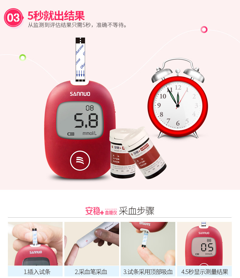 長沙三諾血糖測試條安穩+ 50支/盒——自動虹吸,采血量少